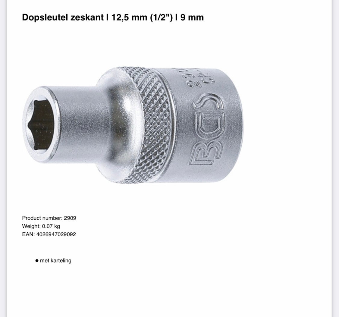 Dopsleutel zeskant | 12,5 mm (1/2") | 8 mm