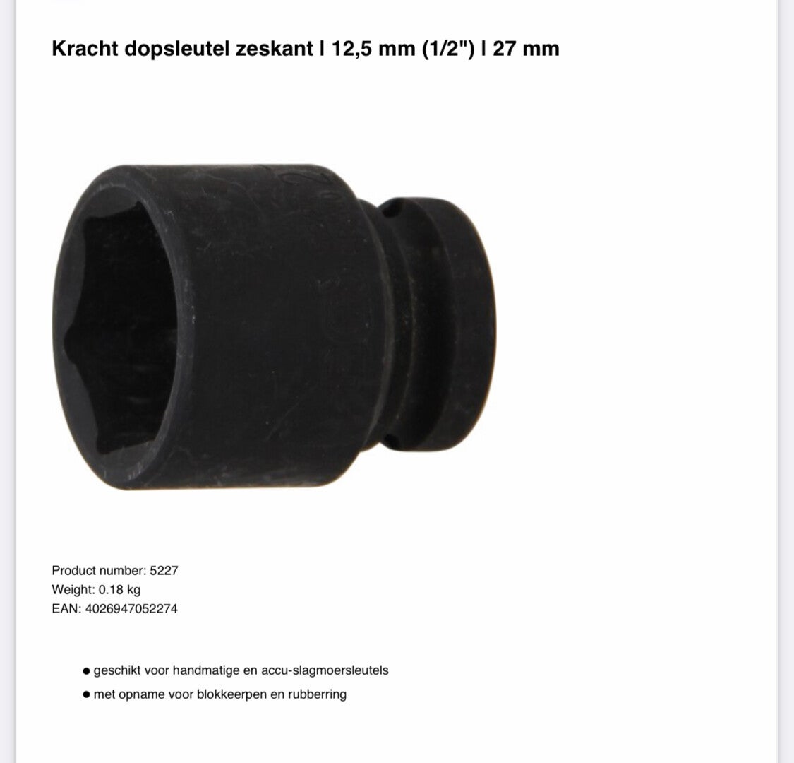 Kracht dopsleutel zeskant | 12,5 mm (1/2") | 27 mm