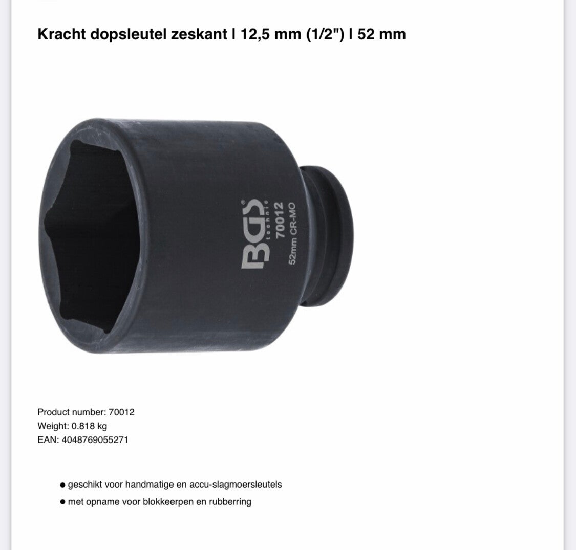 Kracht dopsleutel zeskant | 12,5 mm (1/2") | 52 mm