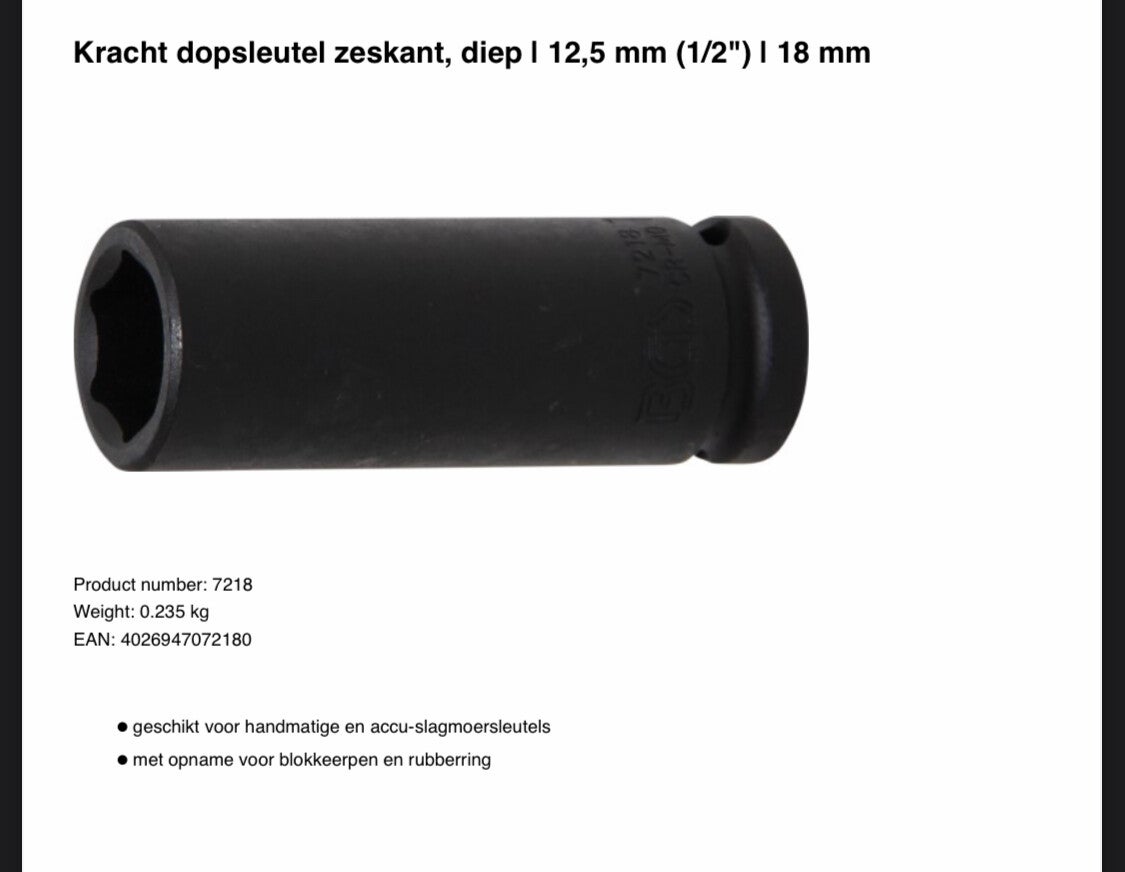 Kracht dopsleutel zeskant, diep | 12,5 mm (1/2") | 18 mm