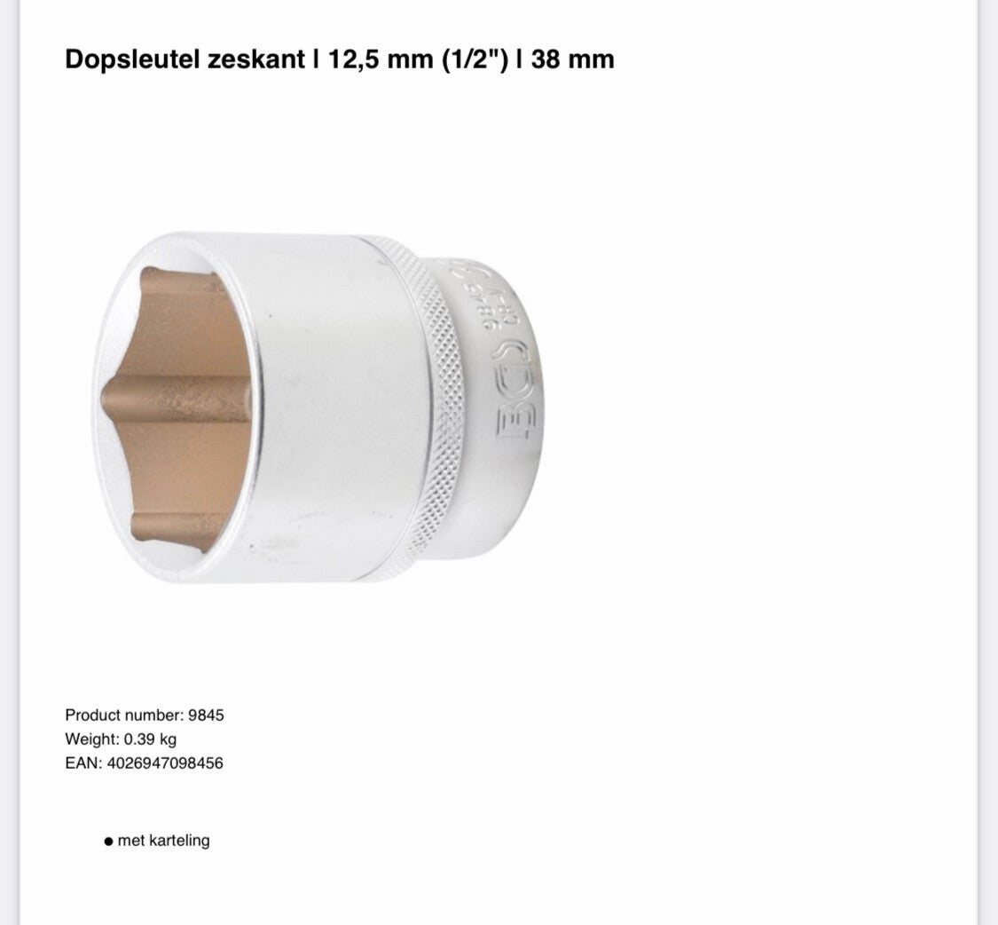Dopsleutel zeskant | 12,5 mm (1/2") | 38 mm