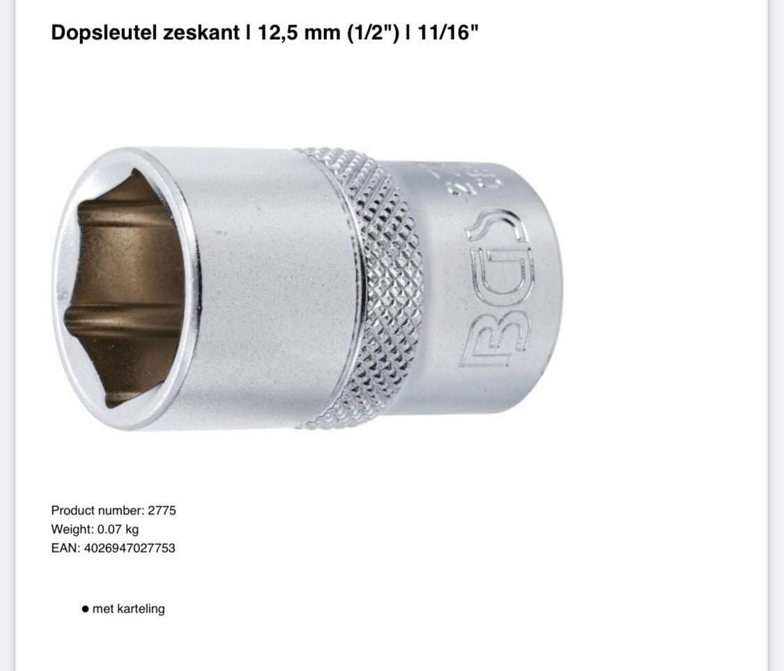 Dopsleutel zeskant | 12,5 mm (1/2") | 11/16"