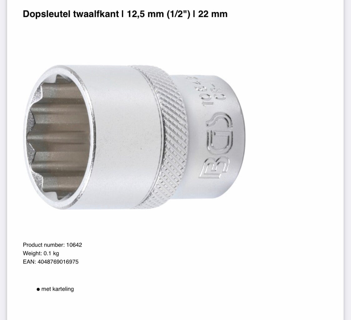 Dopsleutel twaalfkant | 12,5 mm (1/2") | 22 mm