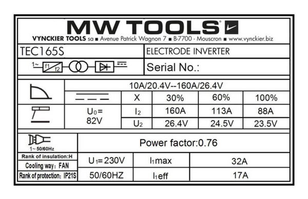 Electrode inverter LCD 160A 230V + accessoires MW Tools