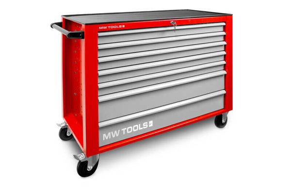 Alle MW-Tools gereedschappen zijn professioneel materiaal in chroom-vanadium staal. Deze tools worden geleverd in de brede (945mm) 7-laden gereedschapswagen GW307 voorzien van 2 grote opberglades.