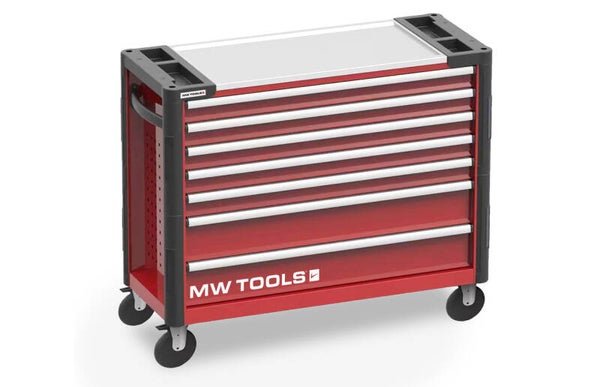 Alle MW-Tools gereedschappen zijn professioneel materiaal in chroom-vanadium staal. De gereedschapswagens hebben een centrale vergrendeling, geleverd met 2 sleutels en hebben een capaciteit van 40 kg per lade. De geperforeerde zijwanden zijn ideaal voor het ophangen van accessoires.