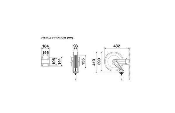 Haspel perslucht en water m Ø G 3/8" (f) 20 bar Gepoederlakt staal met zwenkbare muurbeugel