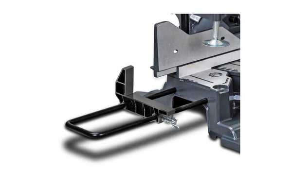 - Zijaanslag met uitschuifbare zijwaartse verlengingen (werkstuksteun) voor lange werkstukken