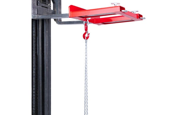 Gebruik uw heftruck als kraan voor het transport van machines, vaten, big bags, ladingen met hijsbanden en rondstroppen, ladingen waar de vorken niet onder passen, enz.