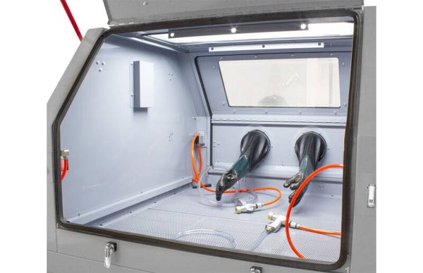 Ontdek onze straalcabine CAT1200, speciaal ontworpen voor grote werkstukken die gerestaureerd moeten worden. De cabine is gemaakt van stevig staal en biedt uitstekende duurzaamheid, stabiliteit en prestaties. Dankzij de ruime binnenkant is het mogelijk om verschillende werkstukken te stralen. Twee gebruikers kunnen tegelijkertijd werken, of één gebruiker kan wisselen van werkstation zonder de werkstukken in de cabine te hoeven draaien.