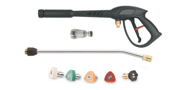 Veelzijdige reinigingsmogelijkheden: Pas de werkdruk eenvoudig aan via de geïntegreerde manometer en profiteer van het 5-delige snelwisselmondstukkenpakket voor diverse straalhoeken (puntstraal, ventilatorstralen en schuimtoepassing). De geïntegreerde 3-liter detergenttank met eenvoudige dosering maakt efficiënte reiniging met reinigingsmiddelen mogelijk