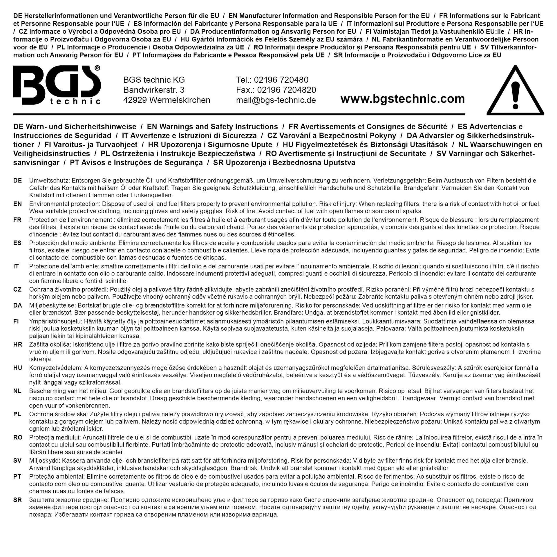 - Oliefilterdopsleutel 36 mm x 6-kantig: voor Mercedes-Benz Axor BR400, Atego BR900, Actros BR 500, Scania PDE V8-motoren en HPI-motoren met oliefilter.