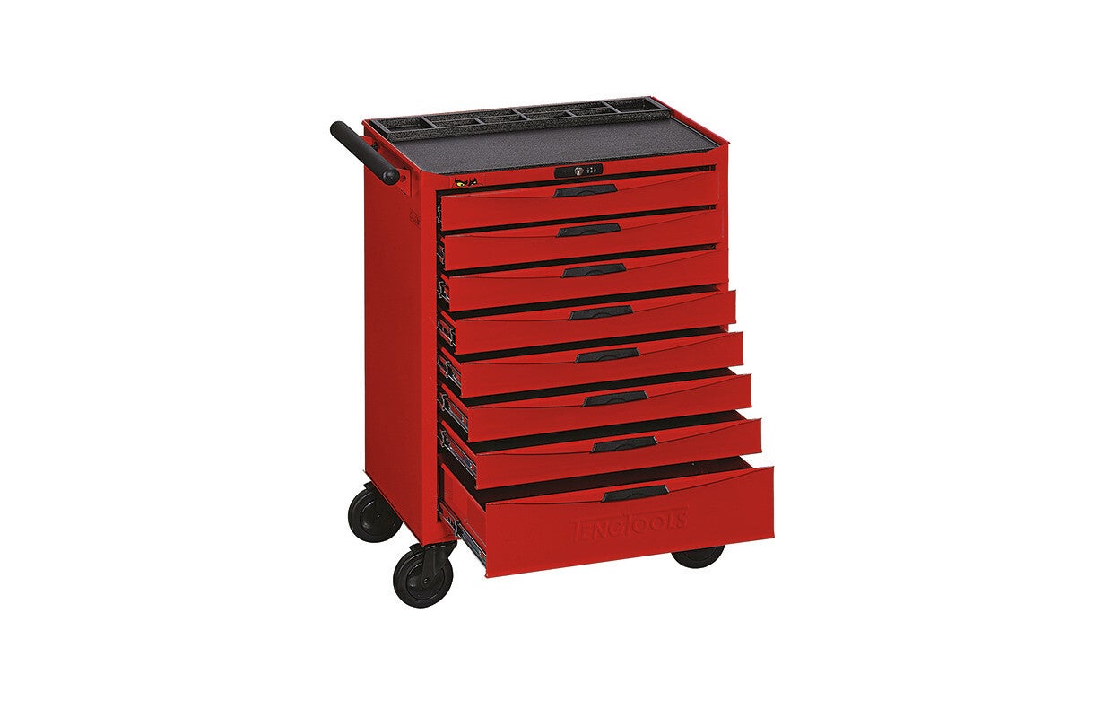 Deze Mini Master Tools set bestaat uit een set gereedschappen georganiseerd in het unieke Teng Tools systeem, allemaal opgeborgen in een gereedschapswagen met 8 laden.