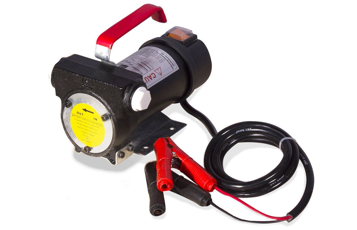Set met pomp 12 V, pistool, aanzuig- en drukslang en koppelingen.